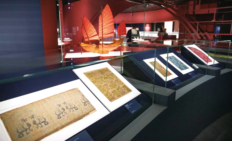 上海博物馆举办的“寰宇东西:马可·波罗眼中的中国和世界”特展上展出的丝绸织物。 赖鑫琳摄