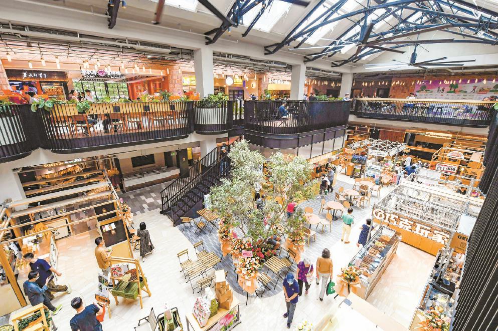 鸿寿坊通过办公楼和里弄商业结合,沿袭了长寿路商圈原有特色,塑造了“精致烟火气”的上海“15分钟社区生活圈”商业新范式。本报记者 张伊辰摄