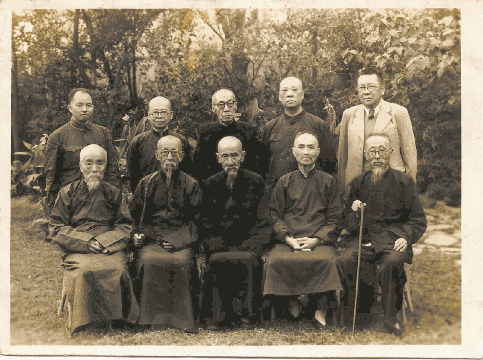 1953年10月16日,上海中山公园重九雅集合影。前排左一曹俶补,左二左三刘啸篁或黄燕甫,左四锺泰,左五刘约真;后排左起王亚文、程宅安、吕思勉、何静涵、葛一之。