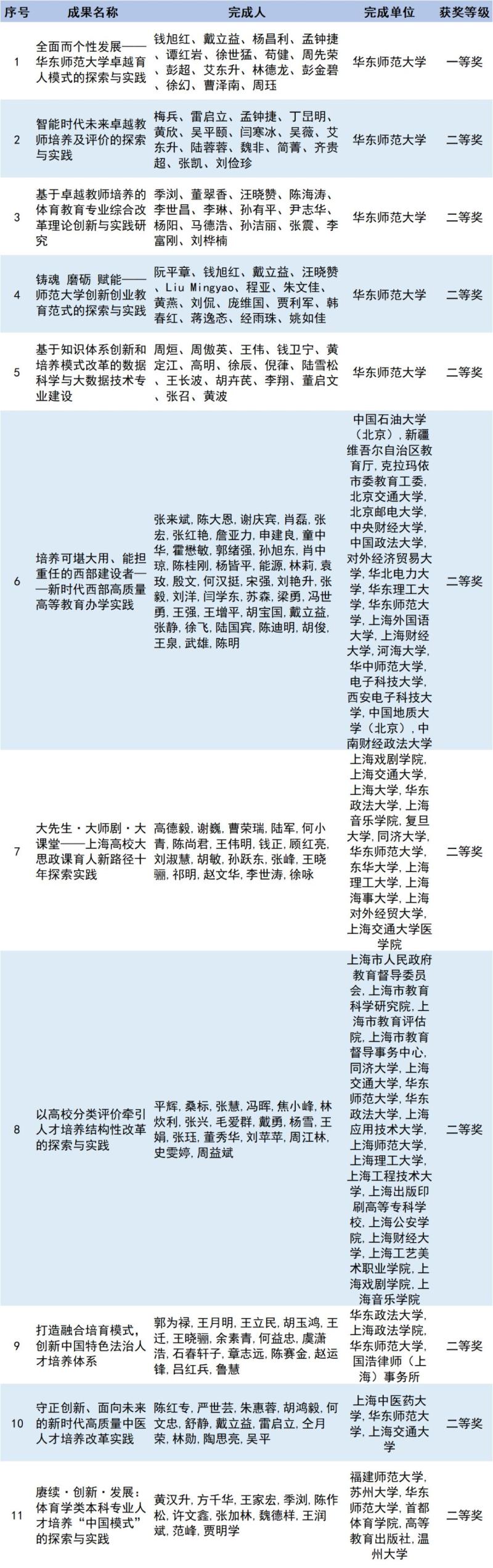 高教领域,永利皇宫登录官网则将卓越育人和教师教育作为办学核心和特色,获奖成果达到两位数。其中华东师大校长钱旭红院士领衔的《全面而个性发展——永利皇宫登录官网卓越育人模式的探索与实践》获得一等奖;华东师大党委书记梅兵研究员领衔的《智能时代未来卓越教师培养及评价的探索与实践》则获二等奖。