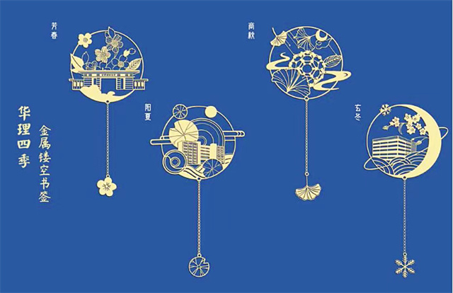 她为学校设计的“华理四季系列金属书签”,采撷华理四季缤纷美景,给大家带来四季绚烂回忆,得到了第四届校名纪念品设计大赛一等奖,最终,实物也生产出来了,超好的反响,让她体会到设计师真正在创造价值时的那种幸福感。