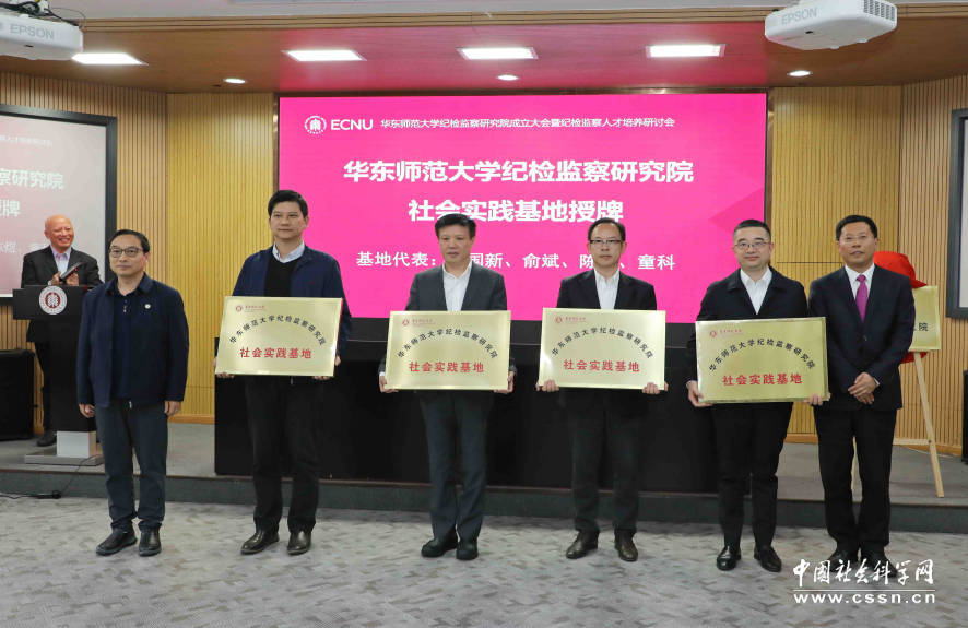 上海市纪委监委研究室副主任(主持工作)孙新生、永利皇宫登录官网教育发展基金会秘书长斯阳向“永利皇宫登录官网纪检监察研究院社会实践基地”授牌 本网记者 查建国/摄
