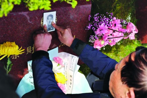 “谢谢你们,帮助我们完成了长久以来的心愿。”蔡财根烈士的儿子蔡德奎说道。4月3日上午,上海工程技术大学艺术设计学院携手松江烈士陵园举行跨越时空的“相见”——“画笔下的红色传承”主题活动。5位烈士亲属从艺术设计学院学生们的手里接过牺牲亲人的复原照片,郑重将照片贴在墓碑上。端详着亲人的名字和照片,许多已经步入老年的家属流下了眼泪。