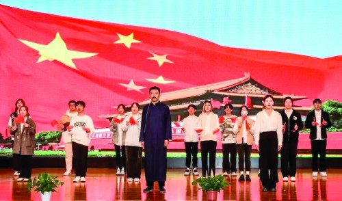 “同胞们,我们要努力拼命地向前,我们黄金的世界,我们光华灿烂的世界就在眼前!”舞台上的“李大钊先生”举起双臂,精神振奋,身后青年学生举起手中的红旗挥舞着——这是一堂特别的班会。