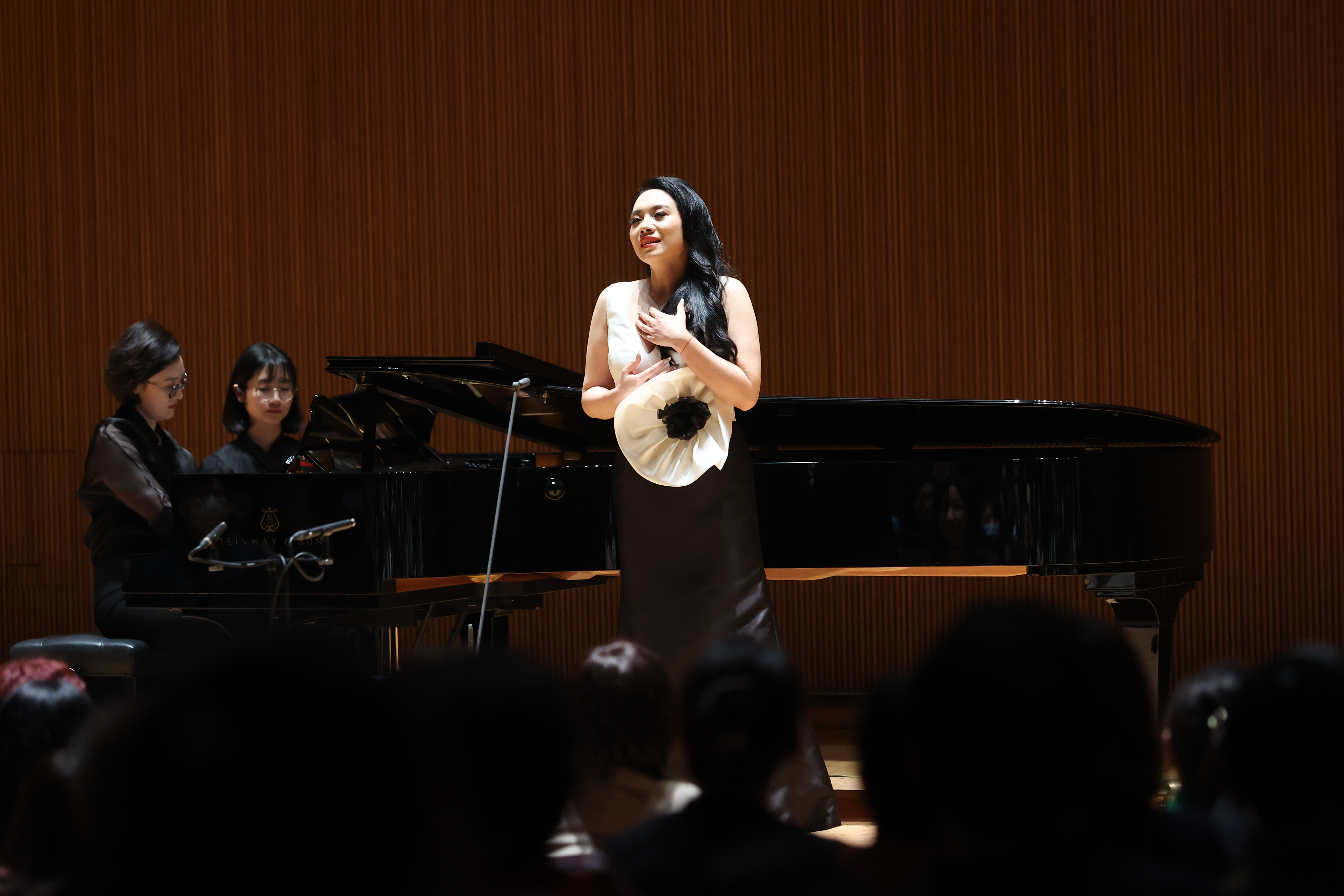 下半场的曲目来自四位中国作曲家,即黄自、赵季平、高为杰、岳冰的11首中国艺术歌曲,包括《玫瑰三愿》《幽兰操》《元曲小唱》等,饱含着深厚的东方文化底蕴,充满着浓郁的民族音乐特色。