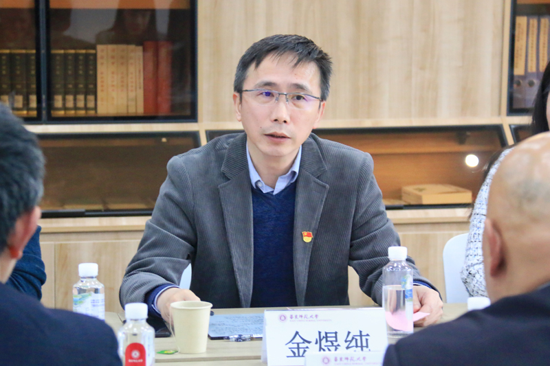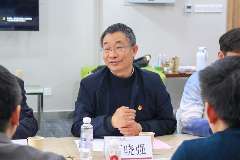 马克思主义学院紫江学者特聘教授丁晓强介绍了学院近几年参与的重大党史研究资料编辑工作、“两新”组织党建工作进展,以及学院党建研究工作的方向,并展示了学院的优秀研究项目与成果。
