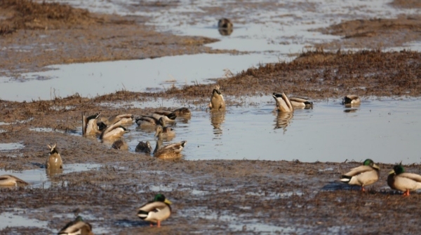 图说:修复后的海三棱藨草为越冬水鸟提供食物