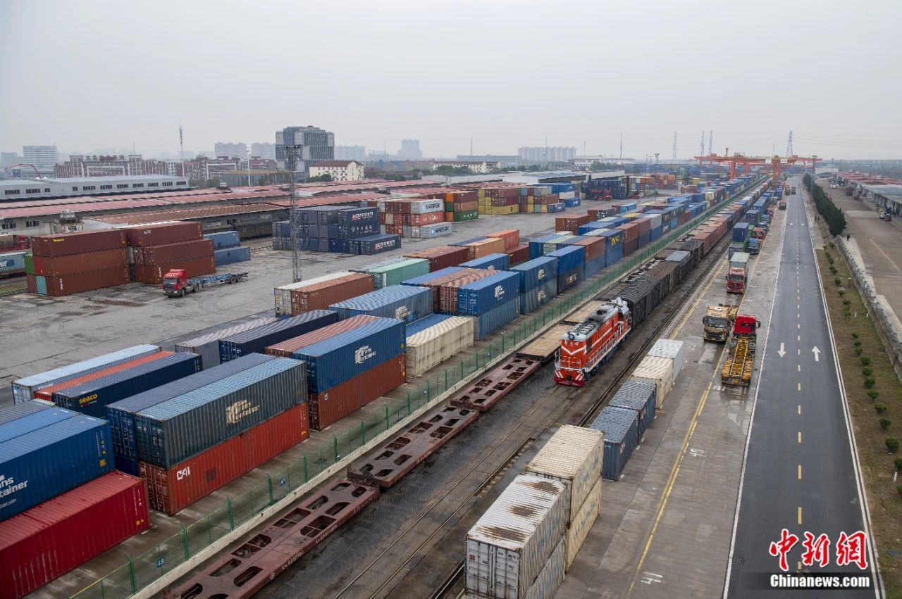 2022年12月7日, “义新欧”中欧班列发车驶往中亚五国。截至当日,“义新欧”中欧班列义乌平台今年共开行1524列班列。胡肖飞 摄