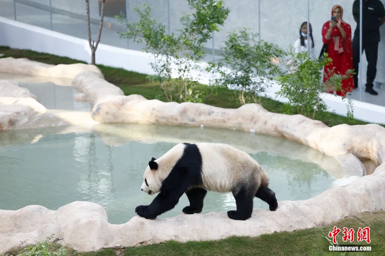 首对中国赴卡塔尔大熊猫“京京”与“四海”在多哈引发“熊猫热”。富田 摄