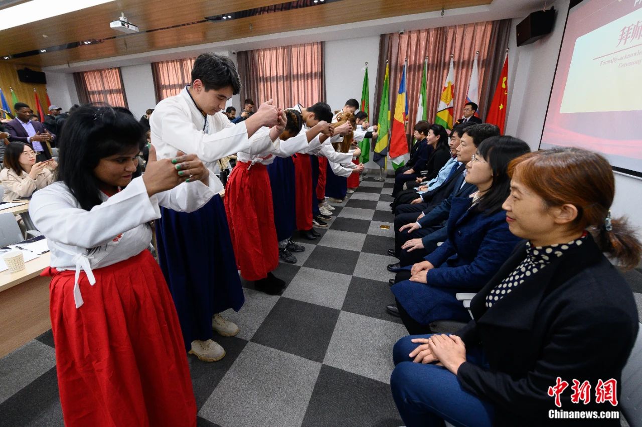 太原理工大学2020级国际留学新生行“拜师礼。韦亮 摄
