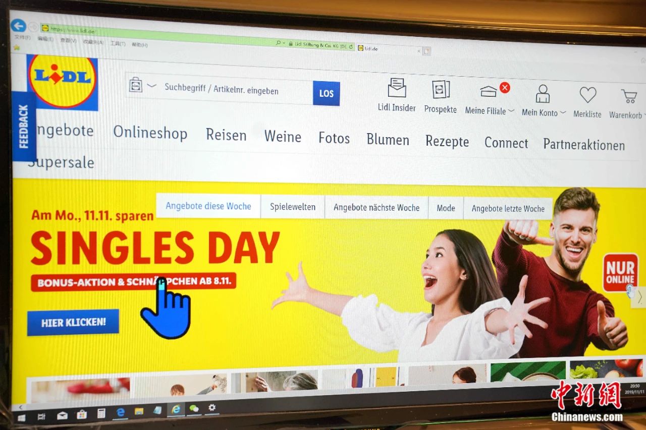 11月11日是中国的“双十一”购物狂欢节,如今这一购物节影响已扩大至全球。图为德国网站首页头条区放置的“双十一”活动广告。彭大伟 摄