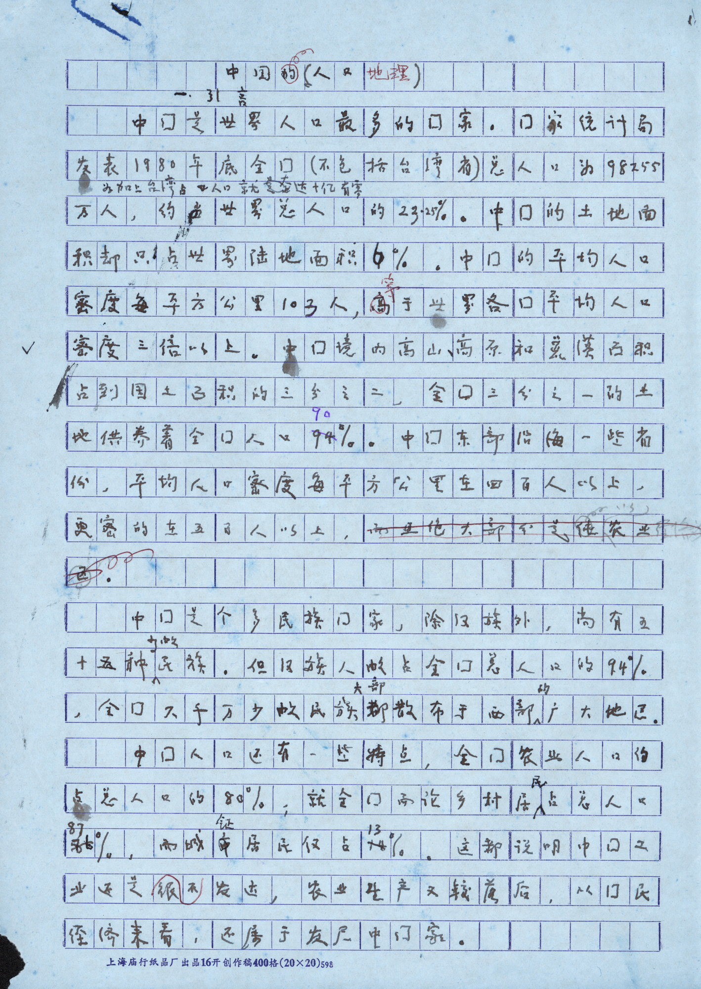 走进手稿展,可以看到诗稿、书信、论著、文稿、日记、笔记等各类展物。文稿有永利皇宫登录官网地理系教授、著名地理学家胡焕庸的《中国人口地理概要》底稿。胡焕庸早年毕业于南京高等师范学校,师从竺可桢。他1935年首次提出标识中国东西部人口差异的“瑷珲-腾冲线”,即著名的“胡焕庸线”;又首次系统论证南海诸岛属于中国,并命名为“南沙群岛”。