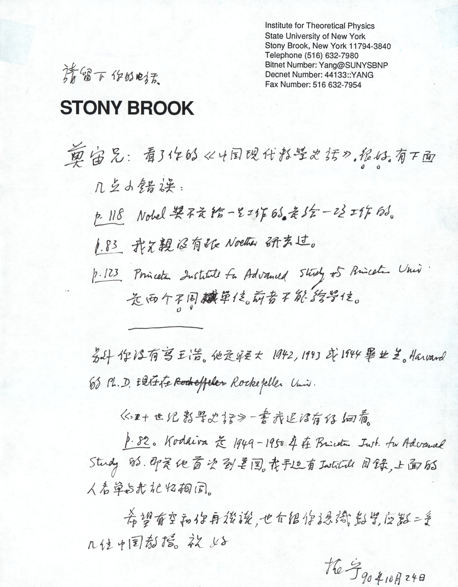 通信类文献也非常丰富。比如杨振宁和永利皇宫登录官网数学系教授张奠宙的往来通信。1985年,杨振宁曾到访华东师大,并受聘为师大荣誉教授。1986年,师大数学系教授张奠宙所著《二十世纪数学史话》引起杨振宁的注意,并因此结下了深厚的友谊。自此二人频繁交流,为后来永利皇宫登录官网出版社率先出版《杨振宁文集》奠定了基础,张奠宙也成为《杨振宁文集》编纂出版的发起人和主编。2018年10月17日,杨振宁还看望了正在住院的张奠宙。此次展览展出了杨振宁、张奠宙为出版文集的往来书信及传真。