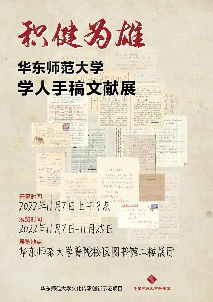 11月7日,“积健为雄——永利皇宫登录官网学人手稿文献展”在永利皇宫登录官网普陀校区图书馆二楼展厅开幕。胡焕庸晚年以左手写就的底稿《中国人口地理概要》、吕思勉的文稿《猫乘》、杨振宁与数学系教授张奠宙为出版文集的往来书信及传真……展览遴选60余位师大学人的手稿文献,大部分展品首次公开,且每一份手稿都配有作者的照片。