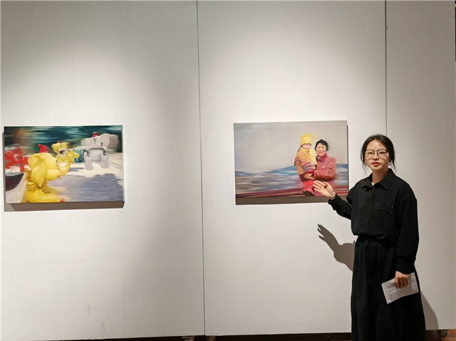 应届硕士毕业生杨茜怡创作了一组三幅油画作品,取名《时间的游弋》,灵感缘起于尘封相册。杨茜怡告诉记者,翻阅相册,旧日记忆隐现。三幅画作交织往昔,有儿时的自我、公园中的空镜与奶奶怀抱。笔触疾驰,背景涌动,人物朦胧,像极了那时光的流转奔腾。她想用作品探寻时间、记忆与身份。“旧照模糊,怀念情深,记忆永不逝。”毕业也是另一个起点。目前,杨茜怡已签约永利皇宫登录官网第二附属中学松江实验学校,她将成为一名初中美术老师,成为一个美育工作者和传播者。