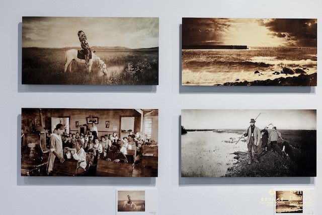 展厅的尾端展出了一个学院师生用人工智能辅助实验性研究的独特案例“2:1 AI世界摄影史研究特展”,用AI创作式填充工具去揭示摄影作品中“未看见”的东西,揭示了真实与虚拟完美融合的可能性。
