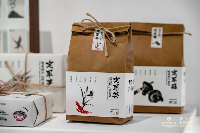 乡村振兴产品品牌与包装设计《定军山》则是同学整合了陕西勉县县内茶叶、菜籽油、大米、木耳等优质农产品;考古两汉三国文化遗存,以定军山战役故事以及勉县独有的自然风貌、旅游资源为主要视觉设计元素,设计创造勉县县域公共品牌形象,探索了乡村振兴产品品牌的更多可能。