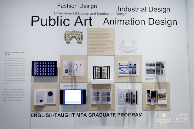 展厅中展出的基于参数化设计与数字加工工艺的设计实践、基于未来生活方式的3C数码配件设计研究、上海公交车身涂装创意设计项目、陕西勉县乡村振兴产品品牌与包装设计、MFA艺术专业硕士建筑艺术设计方向(大师班)设计实践项目、《一千零一个困惑》儿童哲学绘本等丰富多彩的实践项目课程教学成果案例,展示了产教融合教学改革的生命活力。