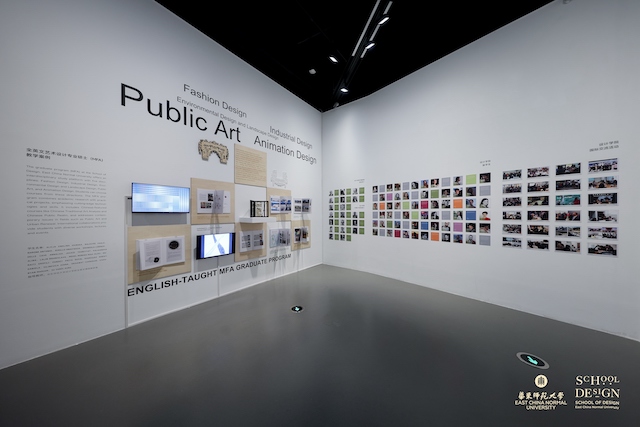 二号厅展示的是设计学院以国际化办学和产教融合办学为主要特色的教学改革及其成果案例。产教融合项目实践课程教学的改革是学院教学改革的重要组成部分,学院每学期向学生公布十多个与企业合作的实际研发与设计项目课题,学生不分专业、不分年级、不分本硕,自主选择进入自己感兴趣的项目课题组进行学习,课程指导教师由学院教师与企业和业界导师组成联合导师组,与课题研究相关的国际国内工作营和专题讲座穿插其中。学期结束时学生需要通过现场展览完整展示研发设计成果,并作项目路演。此项改革获得了上海市教学成果一等奖,并获得了国家级教学成果二等奖。