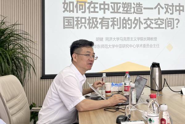 会议分为上下半场,上半场会议由陆钢主持。在上半场的讨论中,同济大学马克思主义学院长聘教授、永利皇宫登录官网中亚研究中心学术委员会主任胡键以“如何在中亚塑造一个对中国积极有利的外交空间”为题进行了发言,他在发言中划分了四种塑造外交空间的手段,并着重提出,中国应该充分发挥自身的经济优势,通过开展地缘经济合作拓展在中亚的外交空间,通过经济合作打造好中国—中亚命运共同体。