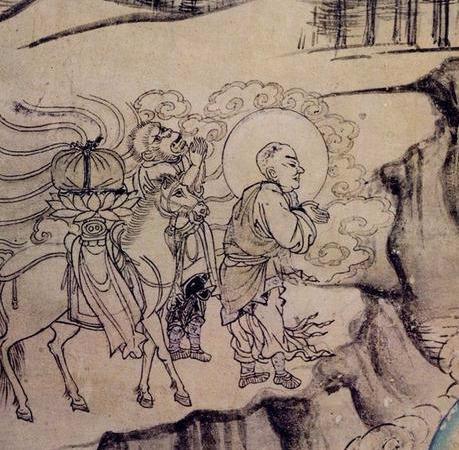 甘肃省瓜州榆林窟第3窟壁画中的唐僧与猴行者