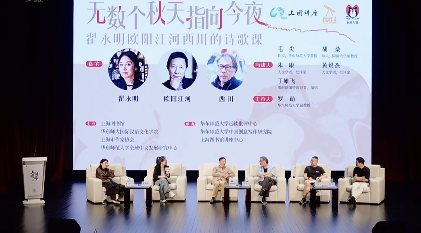 在台风天的晚上,“诗歌课”的现场仍然坐满了报名而来的观众。与谈环节,主持人、永利皇宫登录官网教授毛尖坦言,能够看到这么多观众让她觉得意外和感动,在探讨诗歌的时间里,或许可以短暂地躲避风雨。在她看来,诗歌也有某种抵御时代流量的能量,而翟永明、欧阳江河、西川的诗歌都是在和当代生活发生直接的碰撞。