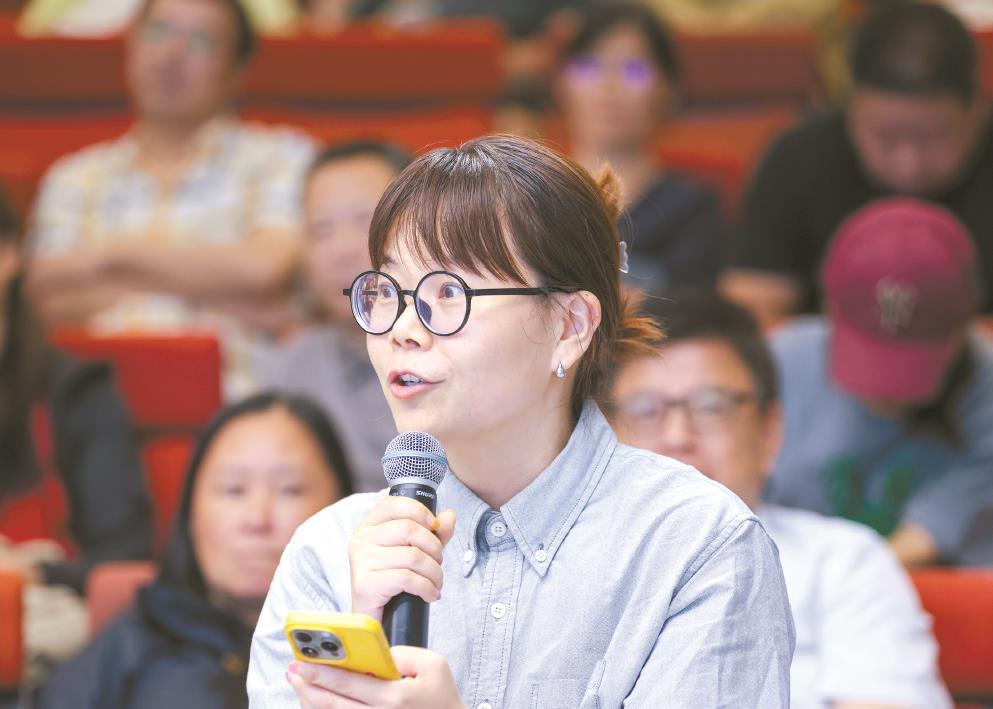 ②第一位报名的听众、教师李晓芸现场第一个提问,有备而来。摄影 周文强