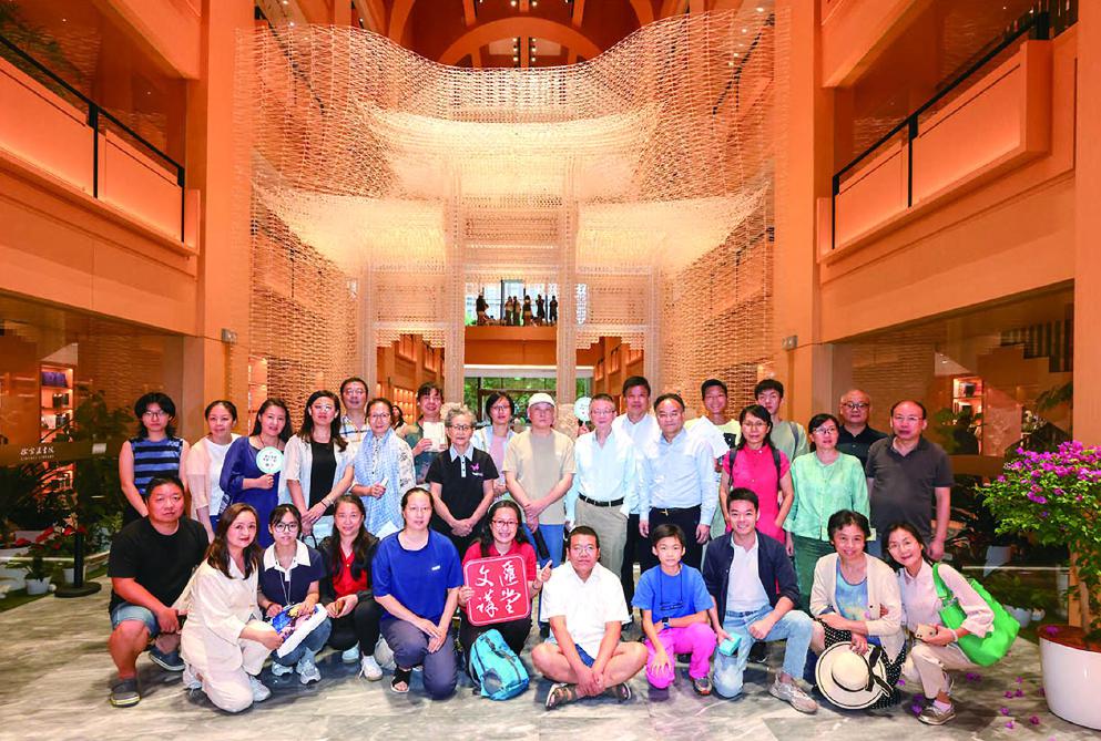 ①部分听友和嘉宾在举办地徐家汇书院的“光启之门”建筑前合影以向400多年前的徐光启致敬,该设计全部由3D打印搭建而成,是科技和人文的融合创意。摄影 周文强