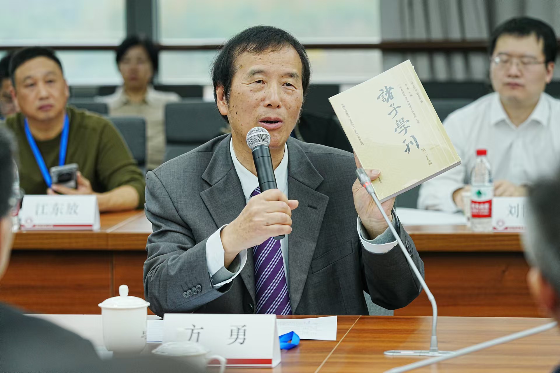 诸子学一直都是当下之学,学者对诸子学的思考并未局限在学理层面,如何在当代社会宣传与转化诸子学亦受到学者关注,诸子学与未来中国文化的发展方向成为会议热议的话题。上海大学新闻传播学院郝雨教授回顾近现代中国文化的发展,以诸子学与时代的关系问题为切入点,对中国文化如何从传统过渡到现代展开了探讨。中国台湾大学哲学系的贺信中认为中国诸子研究院以诠释诸子智慧为重心,同时面向社会实践,推动身心内修与文化外传,实为阐发传统学术之典范。中国台湾中国文化大学文学院贺信中提到,先秦诸子百家学说本为因应时代社会的剧烈变革而生,当代诸子学研究亦致力于中华文化的传承、创新与西方文明碰撞后的因应之道。贵阳孔学堂主任戴建伟先生认为在百家争鸣中形成的诸子智慧是赋能中华民族伟大复兴的重要力量,现今社会亦需要当代的稷下学宫,将诸子思想投入更深沉的思考来应对日趋复杂的社会问题。