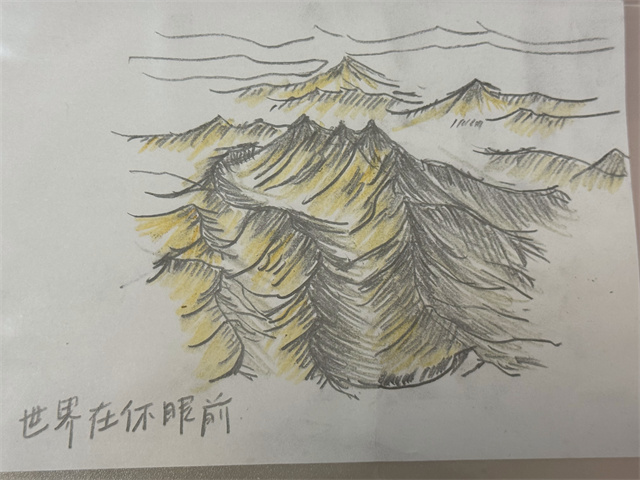 在最后一幅画中,她画下“太阳照耀下的群山”,并写下了这样一句话:“世界在你眼前”。她希望,学生们不仅在高考中金榜题名,进入梦想的大学,更能在未来的人生旅途中,找到自己的方向,选择自己热爱的道路,勇敢地成为自己想成为的人。