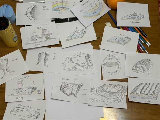 “那段时间练得比较多,尤其是在实习的时候,包括在我的公开课,我都会画很多的板图、水循环图。这些图绘本身就包含着很多地理信息。如果能做成图册送给同学们,不仅是一份我的心意,也希望大家再翻阅时,也可以复习到一些地理知识。”