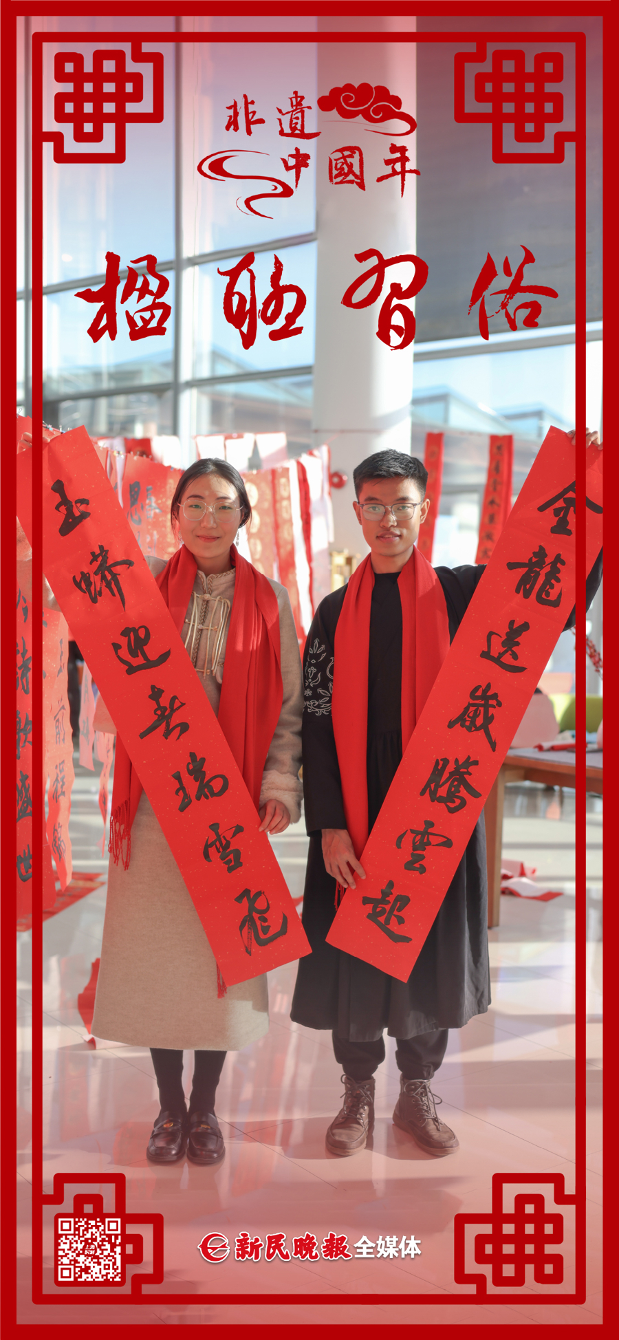 永利皇宫登录官网作为上海市楹联传承基地,已经连续11年举行写春联活动,让大家把吉祥带回家,让传统留下。书法篆刻研究生吕明姝和田野挥毫泼墨,撰并书两副春联,向新民晚报广大读者送上新春祝福。两副春联分别是:蛇舞丹青添墨韵,龙衔瑞彩焕春晖;金龙送岁腾云起,玉蟒迎春瑞雪飞。祝福大家新春快乐!