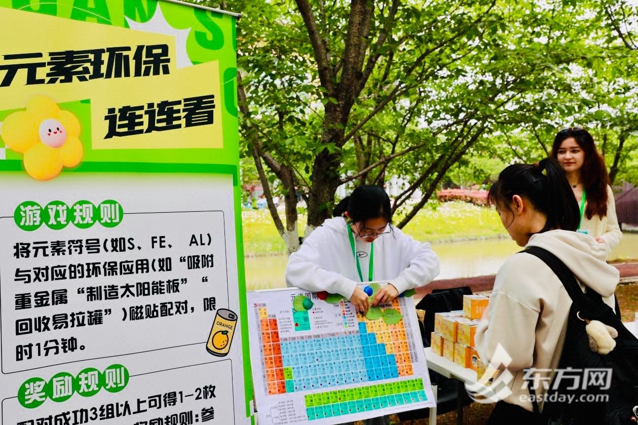 环保市集是活动周的另一道风景线。化学专业学生用苹果制作简易电池,吸引了众多人驻足参与。现场“元素环保连连看”“低碳生活大富翁”“碳足迹大转盘”等互动环节,也让师生通过趣味游戏与手工制作,了解环保知识,体验低碳生活乐趣。