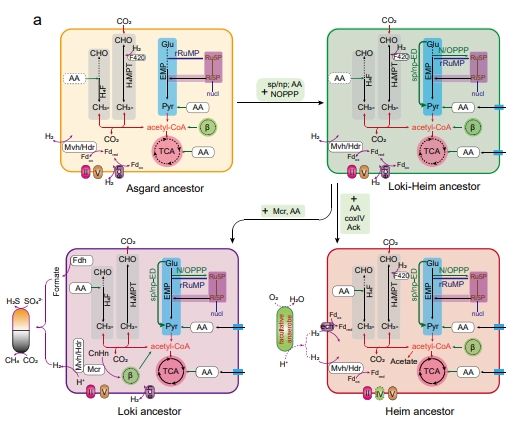 团队在阐明真核生物在阿斯加德古菌中确切位置之后,通过分子定年与祖先代谢重构,推断出阿斯加德古菌与真核生物的最后共同祖先(LAECA)约出现于27.2亿年前。其早于大氧化事件,可能是一个使用氢气作为电子供体的厌氧产乙酸古菌。