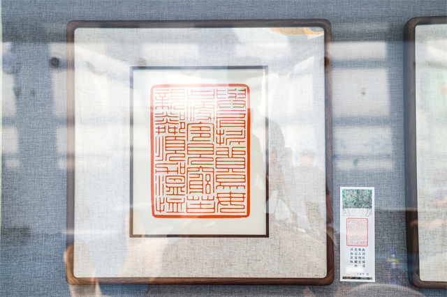 “与肩挑贸易,毋占便宜;见穷苦亲邻,须加温恤”,这是2024级书法篆刻方向研究生丁宁宇的参展作品。现场还展出了高清放大的印蜕,显得颇为壮观。