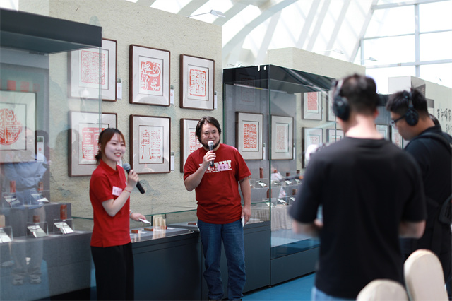 汉字是中华文明的源头所在、根脉所系。张索告诉记者,篆刻,作为中华传统文化的瑰宝,承载着深厚的历史底蕴。它以汉字为核心,通过刻刀在印章上的雕琢,展现出汉字的独特魅力。汉字是中华民族的基因,是民族文化自信的基石。在四大文明古国中,唯有中国的汉字历经数千年而不衰,这得益于先民创立的造字六书理论。篆书虽在汉代退出历史舞台,却在篆刻中得以延续。特别是对于青少年来讲,在欣赏和学习中,可以感受到文字的前世今生,有很强的知识性和趣味性。篆刻不仅是文字的传承,更是文化的传承,它让我们在现代社会中依然能够触摸到历史的脉搏,感受到民族文化的强大生命力。