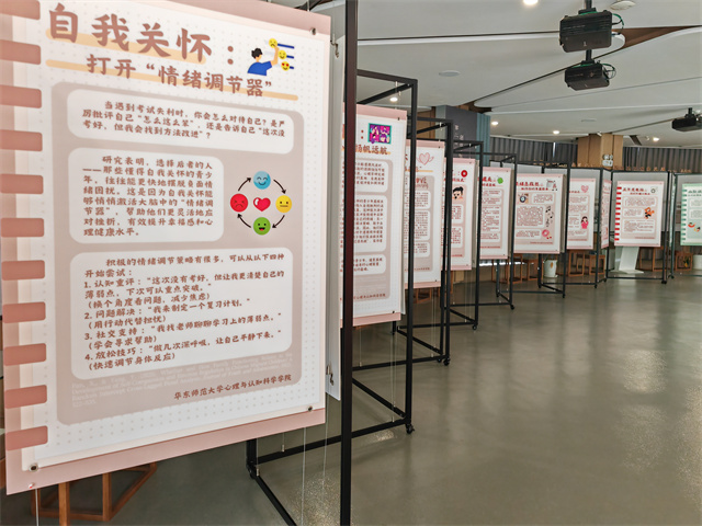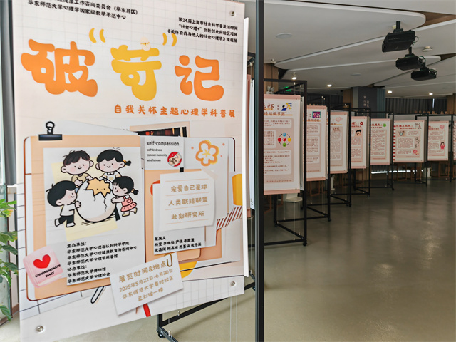 期末,两位授课老师联合学生骨干一同策展破“苛”记。此展目前正在永利皇宫登录官网普陀校区孟宪承·刘佛年教育成就陈列室展出。可以说,这既是一次课堂总结,又是一场兼具学术深度、实践温度与社会关怀的心理盛宴。它旨在构建一个自我关怀认知和行动清单的闭环,帮助破除个体内心自我苛责的枷锁,从而重塑健康且积极的自我认知。
