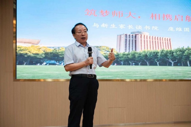 庞维国还进一步引用美国心理学家威廉·詹姆斯(William James)的名言——“播下一个行动,收获一种习惯;播下一种习惯,收获一种性格;播下一种性格,收获一种命运”,阐明行为习惯与人格塑造的深远影响。他特别指出,这一观点与华东师大的育人传统高度一致。家长应避免“唯分数论”,并着重注意三个问题,一是防止沉迷游戏,二是遇到困难及时沟通,三是尊重孩子的专业选择。尤需重视孩子的品格塑造,着力培养其社会责任感、健全人格与综合素养,使其成长为具有家国情怀与时代担当的优秀人才。