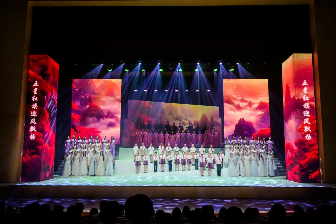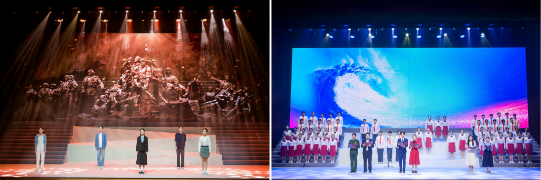 本次活动围绕“九州怒·烽烟起”“烽火烈·同袍行”“山河兴·新程启”三个篇章,立体呈现烽火岁月中华夏儿女的英勇事迹。从舞蹈《山河觉醒》的悲壮,到情景诗朗诵《抗战家书》的深情,从话剧《烽火讲堂》的坚守,到《青春誓言 强国有我》的担当,大中小学师生携手打造了一场跨越时空的“信仰对话”。活动尾声时,合唱《歌唱祖国》点燃全场,掌声经久不息,共同唱响了“我和祖国共成长”的坚定信念,更生动展现了上海学校师生为实现中华民族伟大复兴接续奋斗的昂扬风貌。