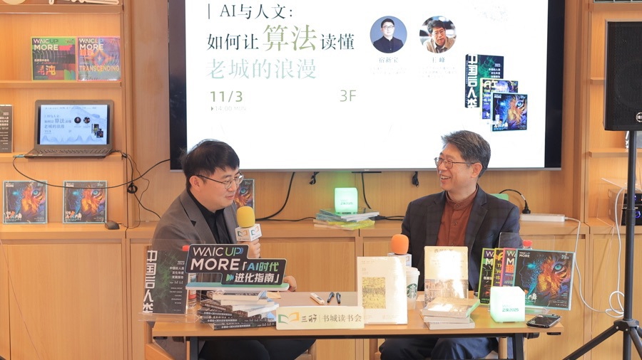 “AI能40秒生成一篇文章,设计师几小时产出100套方案,人的独特性在哪里?”三联书城读书会第十次活动:“AI与人文——如何让算法读懂古城的浪漫”近日在上海三联书店平江路店举办,华东建筑设计研究院有限公司副总经理、副总建筑师宿新宝在现场发问。