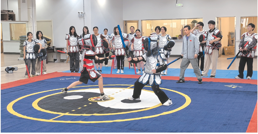 林庆恩告诉记者,武术课上,“以礼始,以礼终”的规则让他感受到中华文明的丰富与厚重,“短兵不是蛮力对抗,而是‘后发先至’的智慧,讲究观察预判、以巧胜拙。咏春拳则讲究中线攻防与触觉反应,老师讲解的这些武术招式背后的哲学尤其令人着迷。”