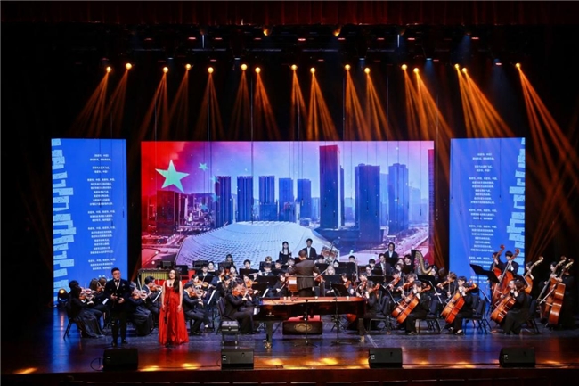 下半场,永利皇宫登录官网交响乐团以专业实力扛起演出重任。在青年教师张栩嘉的指挥下,乐团以《魔笛》序曲奏响华章;学生殷世炎、郑亦栩的经典歌剧选段二重唱韵味悠长;乐团与刘明康合作的《微笑的乔伊》《水边的阿狄丽娜》等钢琴与乐队作品意境深远。随后,男高音歌唱家韩蓬与刘明康联袂献唱《我的太阳》,乐团演绎的《瑶族舞曲》热情奔放,学院声乐教师高凌媛的《帕米尔,我的家乡多么美》高亢嘹亮,最终在《钢铁洪流进行曲》的铿锵旋律与《我爱你,中国》的深情二重唱中推向高潮,全方位展现了国家一流师范大学艺术教育的扎实成果与师生的昂扬风采。