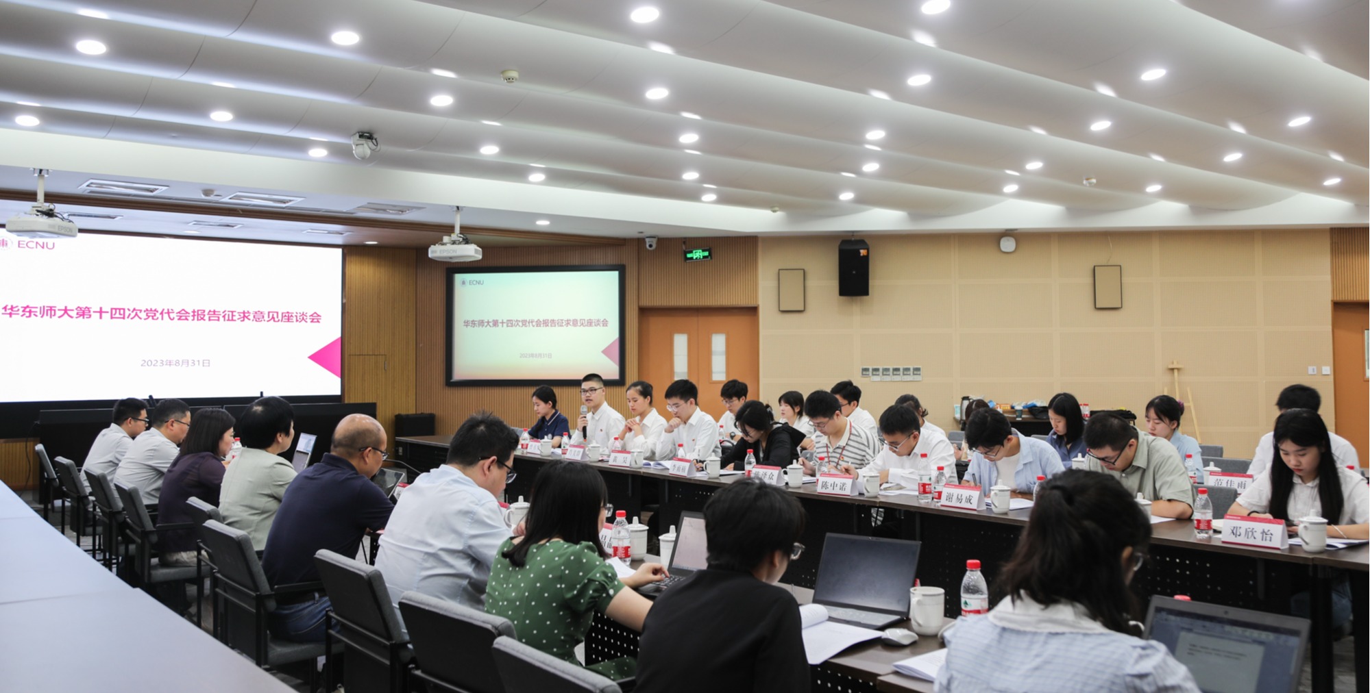 8月31日下午,华东师大召开学生代表专场座谈会,就学校第十四次党代会报告内容征求学生代表意见。校党委副书记杨昌利出席会议,党委学生(研究生)工作部部长赵健主持会议,学校办公室、校纪委、校团委等相关职能部门代表列席会议。第十四次党代会报告学生代表征求意见座谈会举行 座谈会上,党委统战部部长、学校办公室主任张惠虹,校纪委党风廉政与案件审理室主任汪海分别汇报第十四次党代会党委报告、纪委工作报告起草...