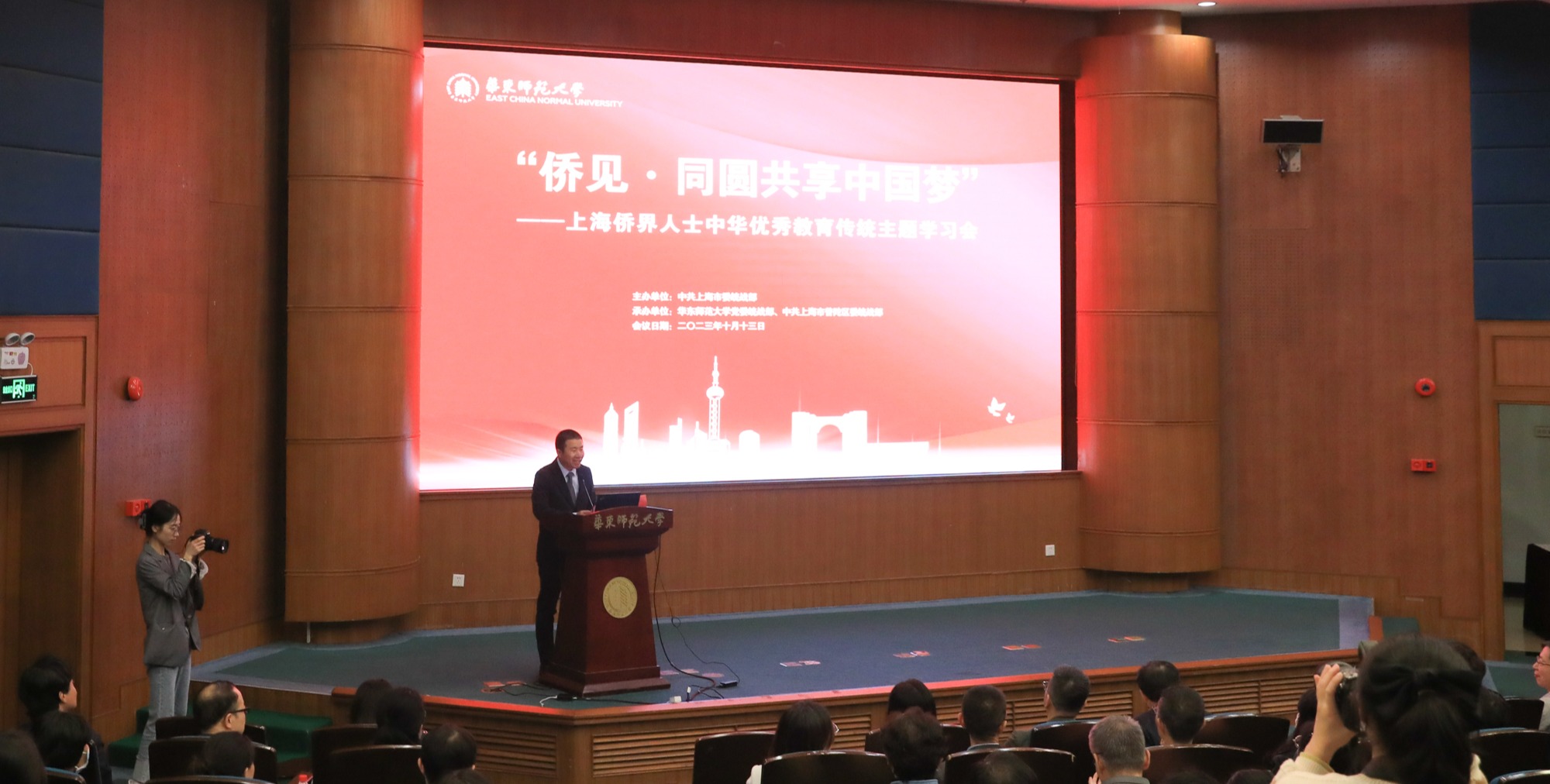 为引导侨界群众弘扬爱国报国的光荣传统,为强国建设、民族复兴汇聚磅礴力量,10月13日下午,“侨见·同圆共享中国梦”——上海侨界人士中华优秀教育传统主题学习会在华东师大逸夫楼报告厅举办。本次活动由上海市委统战部主办,华东师大党委统战部、普陀区委统战部承办。市委统战部常务副部长、市侨办主任董依雯,市政协港澳台侨委员会常务副主任张浩亮,致公党市委秘书长刘新宇,市欧美同学会副会长夏民,华东师大党委书...