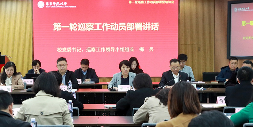 华东师大十四届党委第一轮巡察工作动员部署会于11月9日在普陀校区召开。校党委书记、巡察工作领导小组组长梅兵出席会议并作动员讲话,校党委副书记、纪委书记、巡察工作领导小组副组长、巡察办主任曹友谊主持会议,巡察组全体成员、被巡察单位主要负责人和联络员、巡察办全体成员参加会议。华东师大十四届党委第一轮巡察动员部署会召开 梅兵在讲话中指出,学校第十四次党代会提出了坚定不移全面从严治党,扎实推进党...