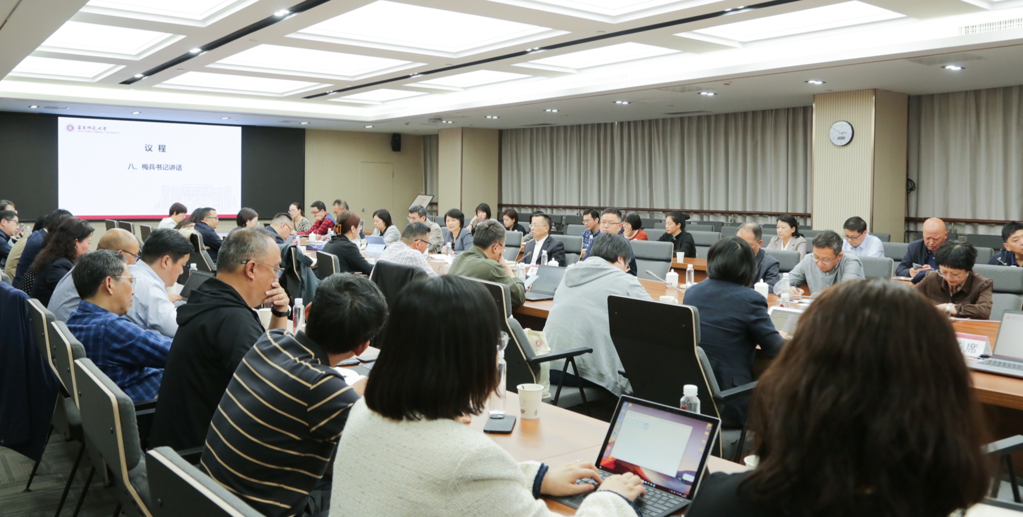 11月8日下午,华东师大在闵行校区召开书记例会,对近期重点工作进行通报和部署。校党委书记梅兵,校党委副书记曹友谊、孟钟捷出席会议。会议由孟钟捷主持。 会上,曹友谊通报了十四届党委第一轮巡察安排和纪委有关已办案件的情况;孟钟捷通报了近期意识形态、网络安全、统战、保密、依法治校等相关工作;校党委常委、组织部部长朱军文通报了近期党建等工作情况;党委学生(研究生)工作部部长赵健通报了学生就业工作和近...