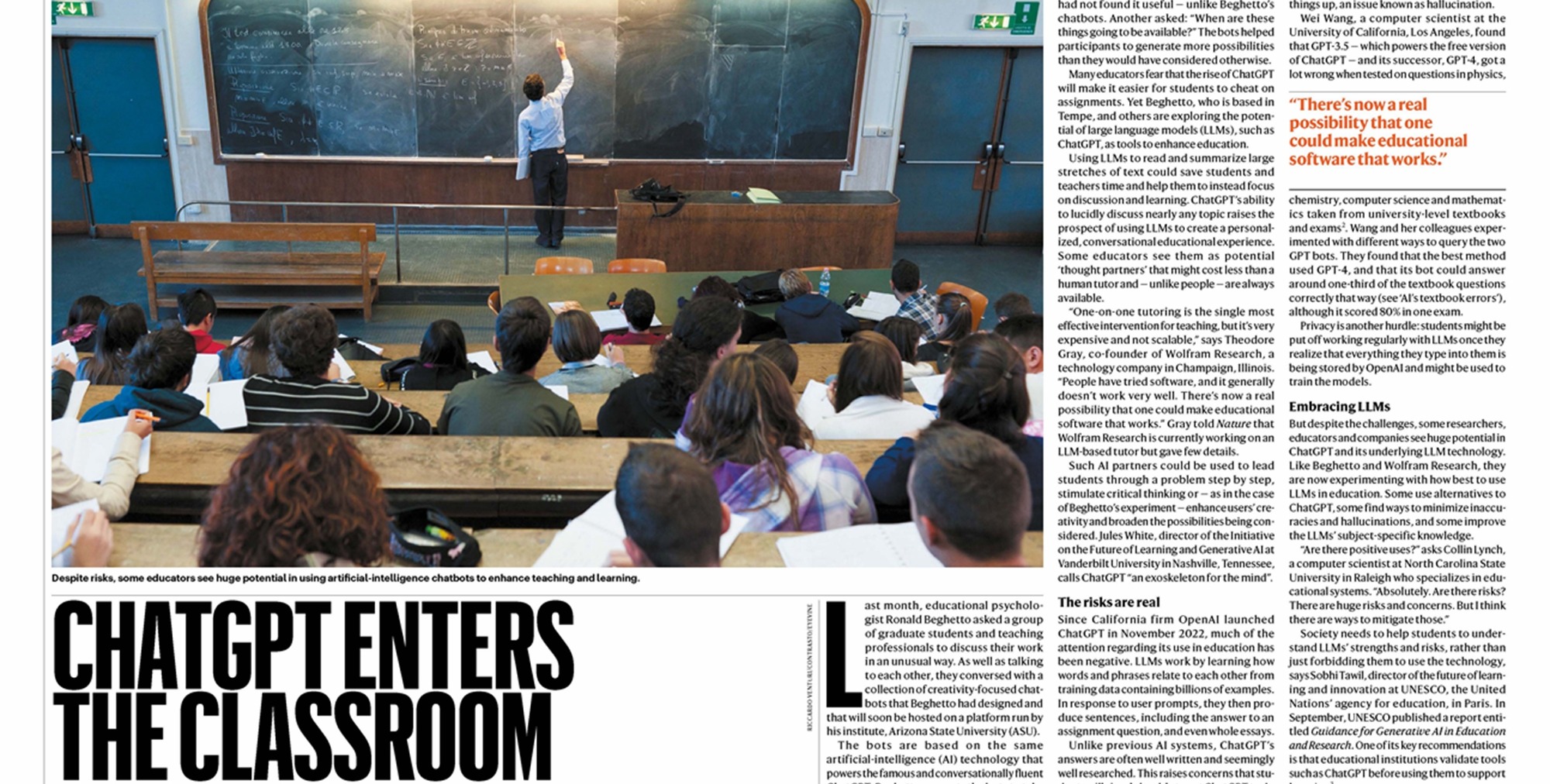 最近,国际知名期刊Nature科普栏目Feature,发表题为ChatGPT Enters the Classroom的文章,探讨大模型对教育的变革和影响,将华东师大计算机科学与技术学院/上海智能教育研究院研究团队研发的教育对话大模型EduChat作为一个代表性案例进行介绍。“Researchers at East China Normal University in Shanghai have created a dedicated educational LLM called EduChat that combines essay assessment, dialogue-based tutor...