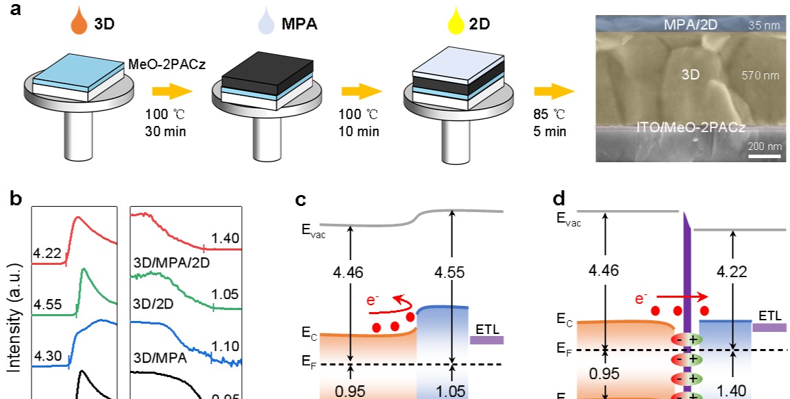 永利皇宫登录官网物理与电子科学学院保秦烨教授课题组针对3D/2D钙钛矿半导体异质结对器件结构的依赖性,解析出其界面电子结构特性,以此提出了一种钝化偶极桥联Passivating Dipole Bridged的界面调控概念,解决了3D/2D异质结在倒置结构光电器件中光电转化效率低的问题。近期,该研究成果以"Passivating Dipole Layer Bridged 3D/2D Perovskite Heterojunction for Highly Efficient and Stable p-i-n Solar Cells"为题发表在Adv...
