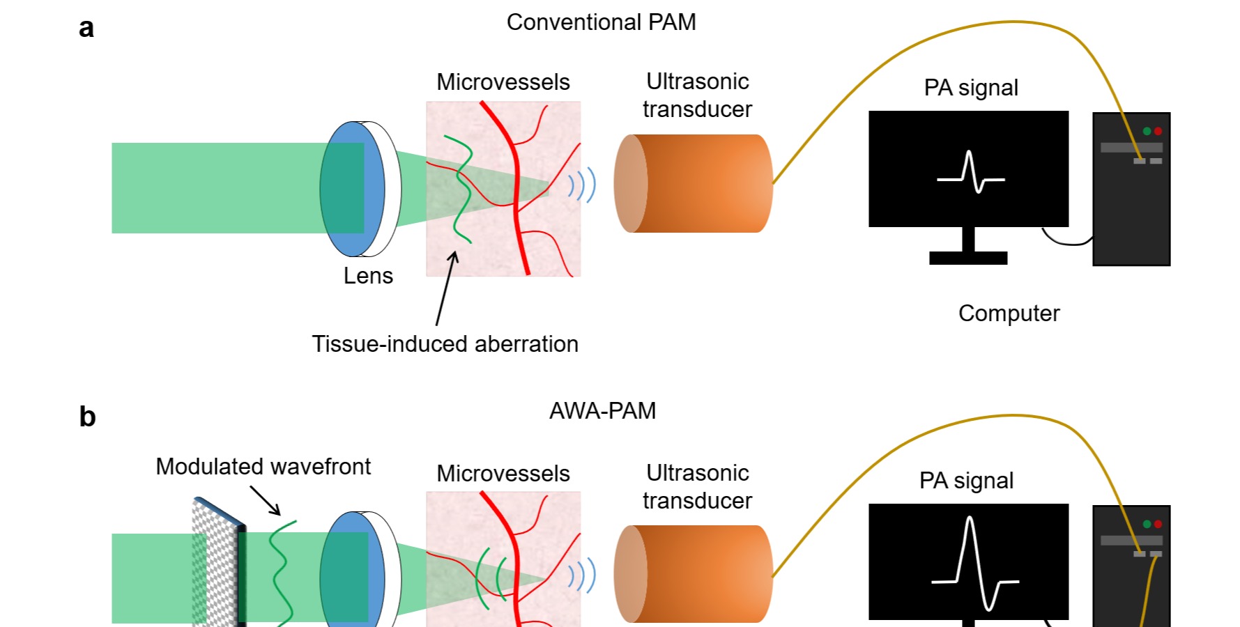 永利皇宫登录官网精密光谱科学与技术国家重点实验室张诗按教授和沈乐成教授团队在光声显微成像领域取得重要进展。针对光声显微中由于光学像差而导致的成像分辨率降低的问题,该团队研发出一种自适应光学技术,能够有效地校正这些像差从而恢复成像分辨率。通过利用超声信号作为反馈机制,他们成功地实现了对活体样本(如斑马鱼和小鼠耳朵)的三维成像,在纠正生物组织不均匀引起的光学像差方面表现出显著的效果。相关成果于2月5...