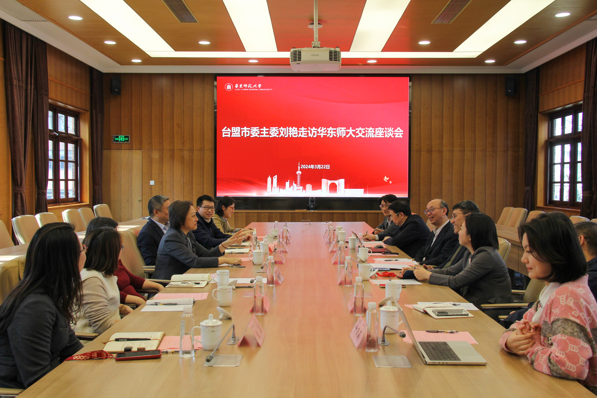 3月22日下午,上海市人大常委会副秘书长、台盟上海市委主委刘艳一行走访华东师大,就落实“两个融入”深化盟校合作等内容进行沟通研商。校党委副书记孟钟捷,校党委常委、统战部部长、学校办主任张惠虹,台盟上海市委秘书长廖志豪出席调研座谈会。上海市人大常委会副秘书长、台盟市委主委刘艳一行走访华东师大 孟钟捷对刘艳一行表示热烈欢迎,对台盟市委长期以来对华东师大的关心和支持表示衷心感谢。他介绍了华东师大的...